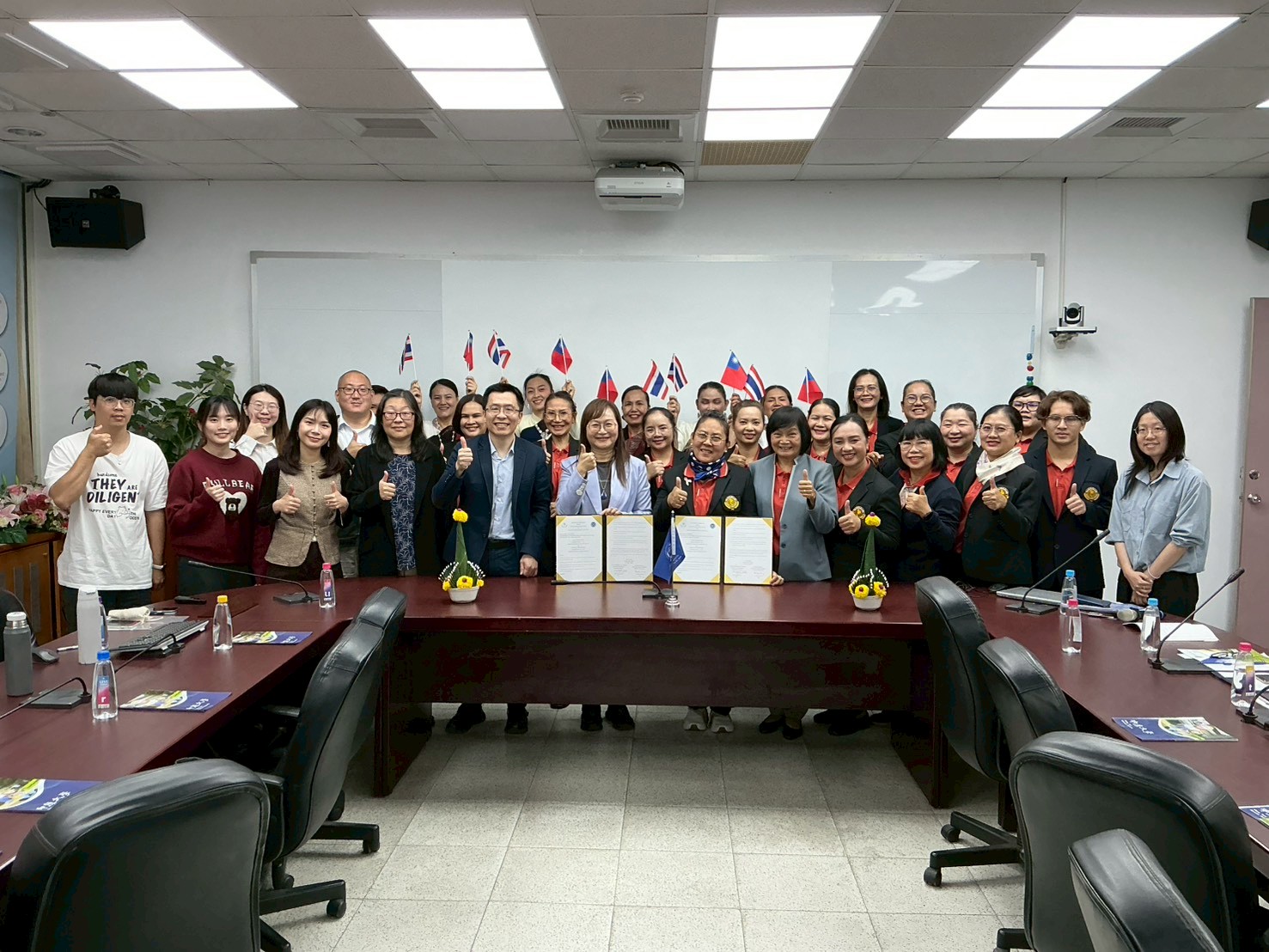 為響應國家新南向政策並深化國際學術交流,商學院於2026年3月27日與泰國坤敬亞洲人文學院(College of Asian Scholars, CAS)科學與科技學院正式簽署學術合作備忘錄(MOU)。雙方將於師生交換、跨國研究、產學實習及人才培育等面向展開合作,攜手培育具國際競爭力的數位管理人才。