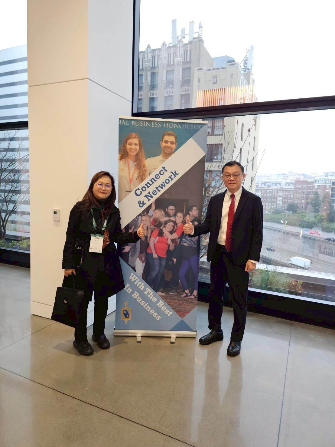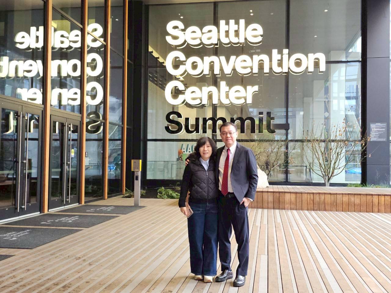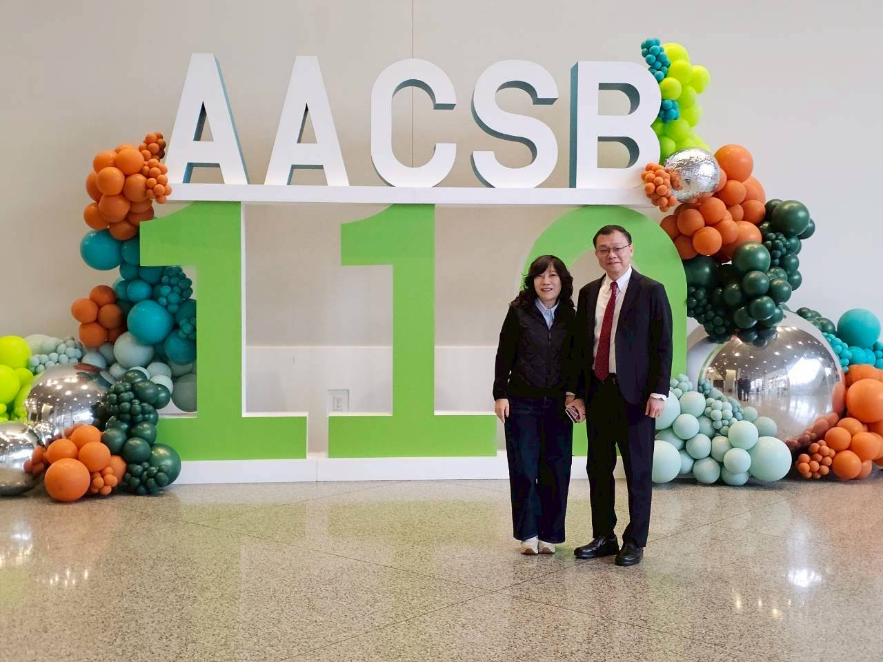 To witness this moment of glory, Dr. Peng and his wife traveled to the Seattle Convention Center (Summit Building) for the ceremony. The event was held during the International Conference and Annual Meeting (ICAM) hosted by AACSB International, bringing together top business school deans and academic elites from around the globe. Dr. Ming-Lei Chang, Dean of the CYCU College of Business, and Dr. Yu-Lun Chen, Associate Dean, also attended the conference in the U.S. to witness Dr. Peng’s outstanding global achievement.