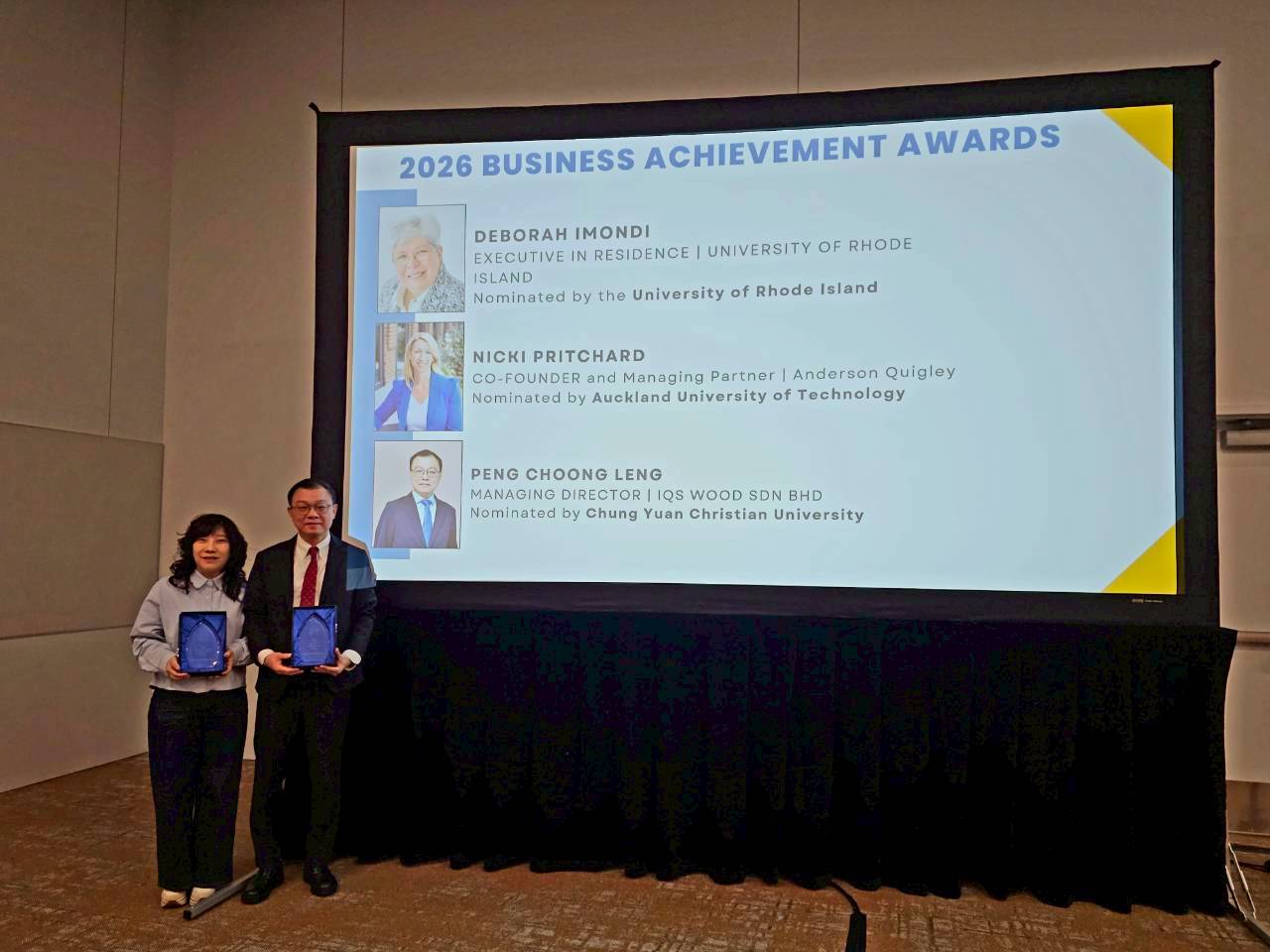 The CYCU College of Business stated that Dr. Peng’s dual awards are the ultimate expression of the university’s “Wholistic Education” spirit. It also showcases the university’s success in promoting sustainable business practices and international integration. As a “Highest Honor Chapter” of BGS, the CYCU College of Business will continue to leverage its strong alumni network to showcase the excellence of Taiwan’s business education on the global stage.